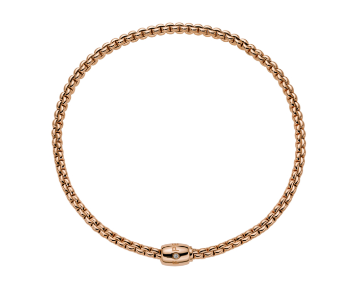 قلادة مرنة مصنوعة بالكامل من الذهب عيار 18 (شبكة إيكا، السُمك الثاني) مع مشبك إغلاق ضاغط مرصع بالألماس الأبيض