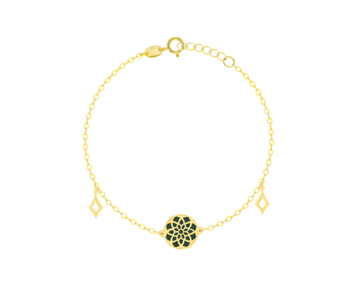 سوار أميليا مدينة من الذهب الأصفر عيار 18 قيراط مرصع بعرق اللؤلؤ الأخضر والأبيض