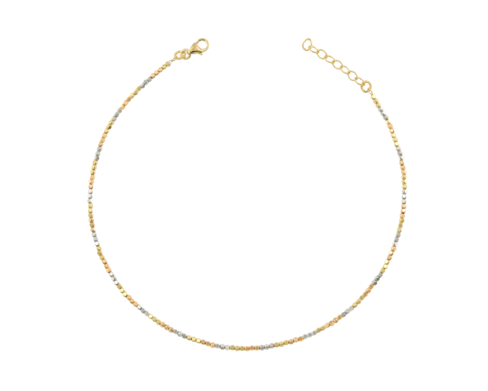 خلخال بسلسلة خرز بريزما سوريسو من الذهب ثلاثي الألوان عيار 18 قيراط