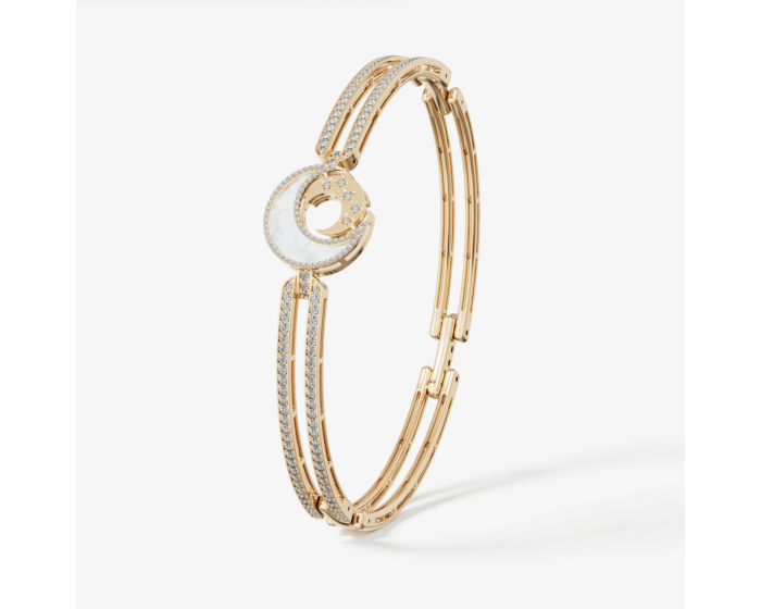سوار صلب قمر الليالي من الذهب الأصفر عيار 18 قيراط مرصع بالألماس وعرق اللؤلؤ