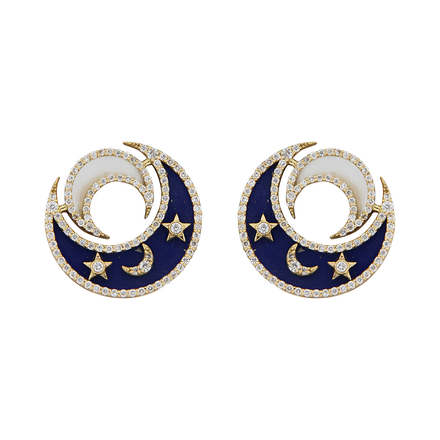 مجموعة "قمر الليالي" مستوحاة من طاقة القمر الأنثوية، الغامضة والمتوهجة والمتغيرة باستمرار - ملتقطة الجمال متعدد الأوجه الذي يسكن كل امرأة. تتميز كل قطعة بتصميم هلالي مزدوج فريد، تعكس مراحل القمر بتناغم مثالي. صُنعت المجموعة من الذهب الأصفر عيار 18 قيراط مرصع بالألماس، وتضم عرق اللؤلؤ الأبيض والفيروز واللازورد الداكن مع نجوم ذهبية. من القلائد والأقراط والخواتم والأساور والأساور الصلبة، تُضفي هذه التصاميم الكونية لمسةً من الأناقة على أي مناسبة، مُحتفيةً بجمال وإشراقة كل امرأة.