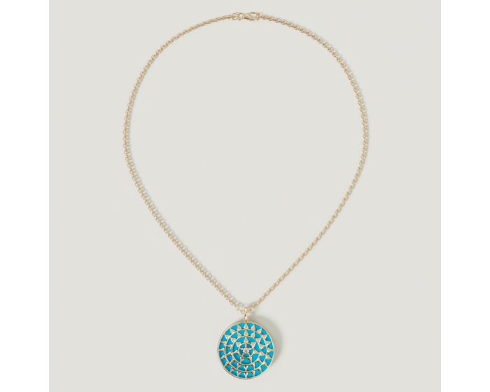قلادة فرفشة شمس من الذهب الأصفر عيار 18 قيراط مرصعة بالفيروز والألماس