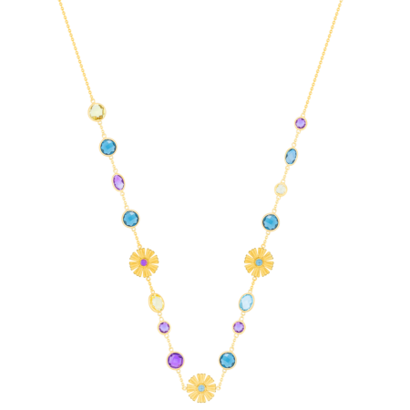 عقد ضيق (شوكر) فرفشة سانكيس غاردن من الذهب الأصفر عيار 18 قيراط مرصع بأحجار الجمشت والتوباز الأزرق اللندني والتوباز الأزرق والكوارتز الليموني