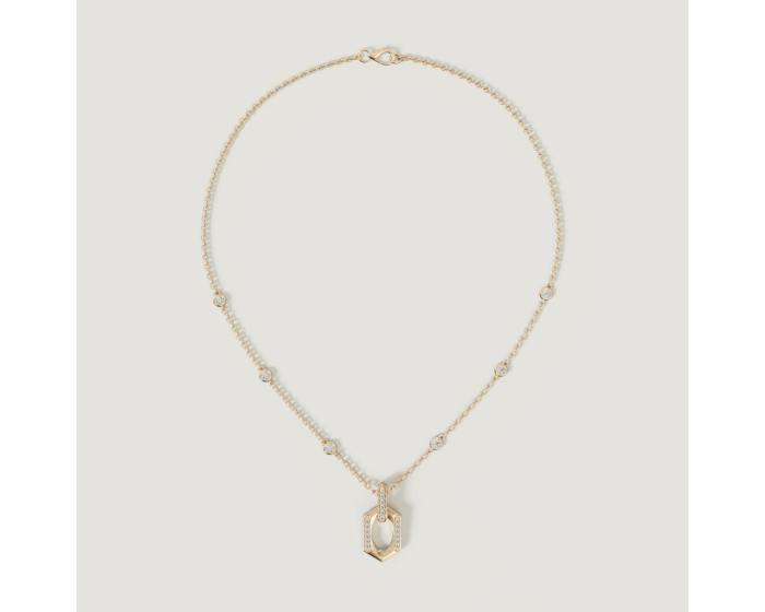 This Necklace is set in 18K Rose gold with round brilliant cut diamond embelishments further elevating the design and adding sparkle. Links is everyday jewellery perfected with Infinite styling options and adjustable chains allowing you to multiply, layer or adjust and wear solo depending on your collar shape.