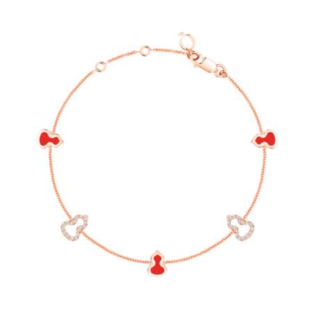 سوار "وولو" طويل من الذهب الوردي عيار 18 قيراط مرصع بالألماس والمينا الحمراء