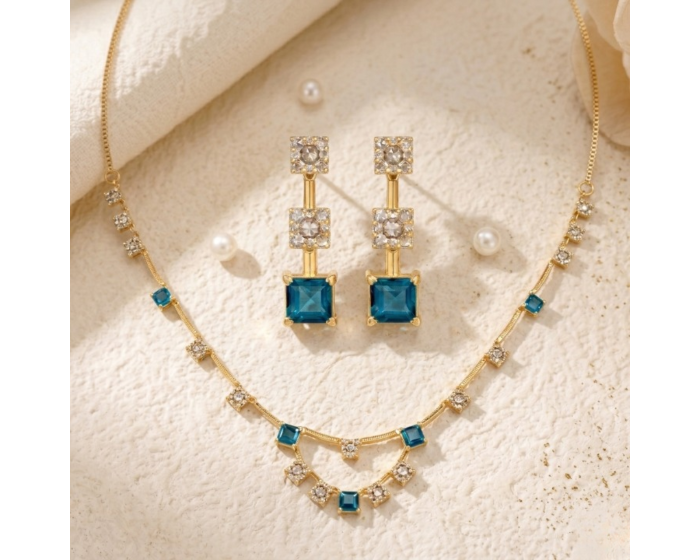 This beautifully composed necklace set is made to draw attention through its rich stone arrangement, warm gold tone, and refined finish. Crafted from 22K yellow gold, it showcases London Blue Topaz that help define its rich and eye-catching appearance. For shoppers researching fine necklace set jewellery, ornate gold designs, or gemstone-led occasion styles, this piece delivers a strong visual presence with refined craftsmanship. It is well suited to event dressing, festive moments, gifting, and those wanting jewellery that feels luxurious from every angle.
