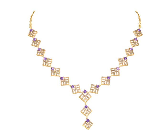 قلادة وأقراط ليجاسي من الذهب الأصفر عيار 22 قيراط مرصعة بالألماس والجمشت