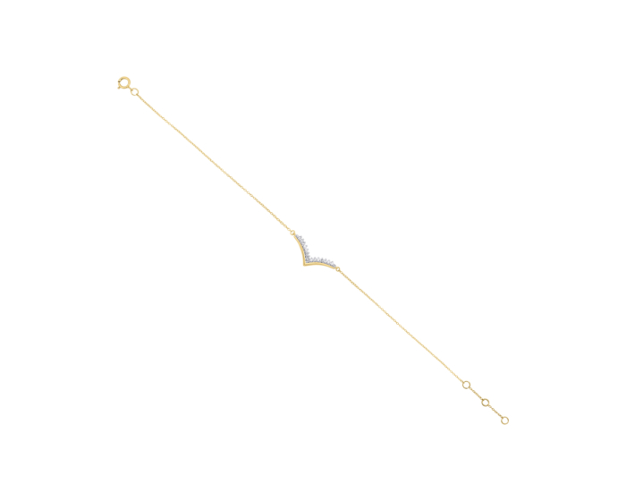 مصنوع من الذهب الأصفر الدافئ عيار 18 قيراط، يعرض هذا السوار نقطة محورية أنيقة، حيث تتبع الألماسات الهندسة الزاويّة بدقة. يكمل التصميم العصري السلسلة المصنوعة ببراعة، محدثًا انعكاسًا ديناميكيًا للضوء. تجسّد هذه القطعة الراقية الإلهام المهيب في فخامة يومية أنيقة.