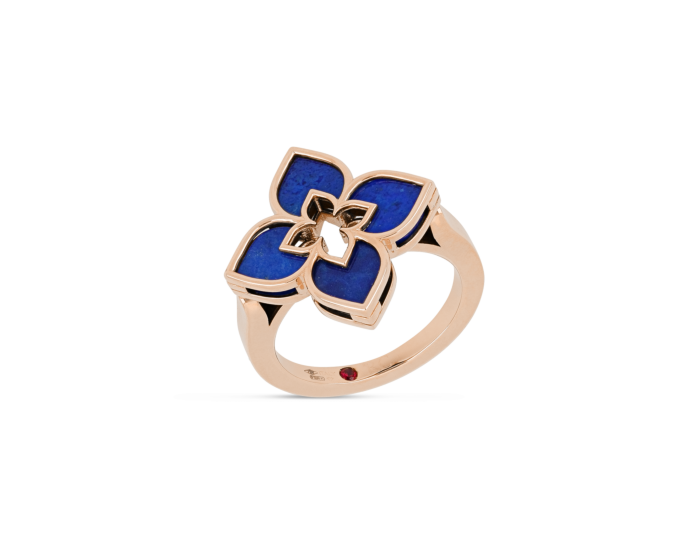 خاتم فينيشن برينسيس من الذهب الوردي عيار 18 قيراطاً مزينّ بحجر اللازورد الأزرق.