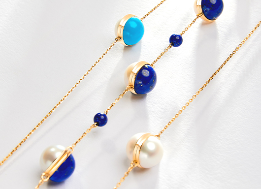 عدد لا يحصى من القلائد المميزة في اصاميم كلاسيكية ومعاصرة؛ يتم ارتداؤها بشكل فردي لتعكس مظهر بسيط، ويمكن تنسيقها بشكل جميل على شكل طبقات وذلك لإضفاء مظهر عصري.