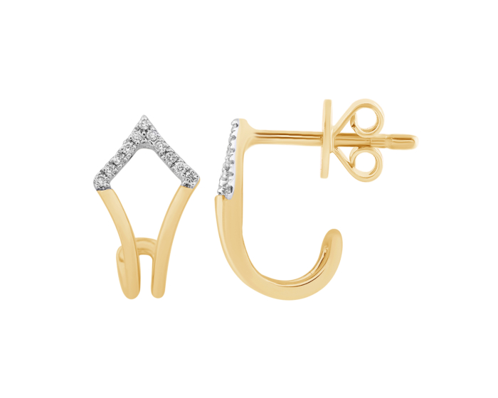 تتجلى الخطوط المعمارية الجريئة في هذه الأقراط المصنوعة من الذهب الأصفر عيار 18 قيراط، حيث تُضفي الألماسات المرصوفة على الألواح تأثيرًا هندسيًا لافتًا.