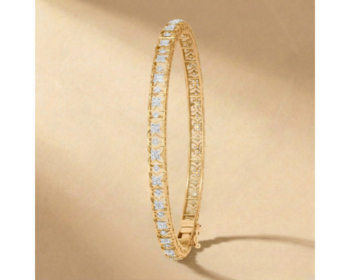 This diamond bangle in 18K gold features a contemporary design with natural diamonds, offering refined elegance.