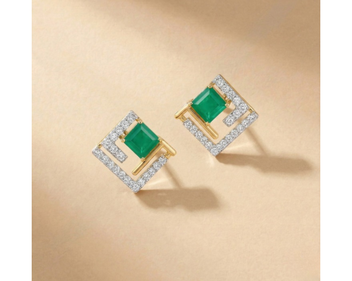 These elegant earrings are crafted in 18K gold and feature vibrant emeralds accented with natural diamonds. The refined design highlights the contrast between the rich green gemstone and the brilliance of diamonds, creating a sophisticated look. Perfectly suited for both everyday elegance and special occasions, these earrings are a timeless addition to any jewellery collection.