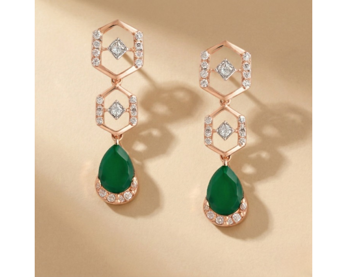 Ananya Diamond & Green Onyx Earring in 18K Gold.