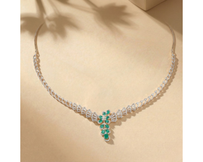 Ananya Diamond & Green Onyx Necklace in 18K Gold.