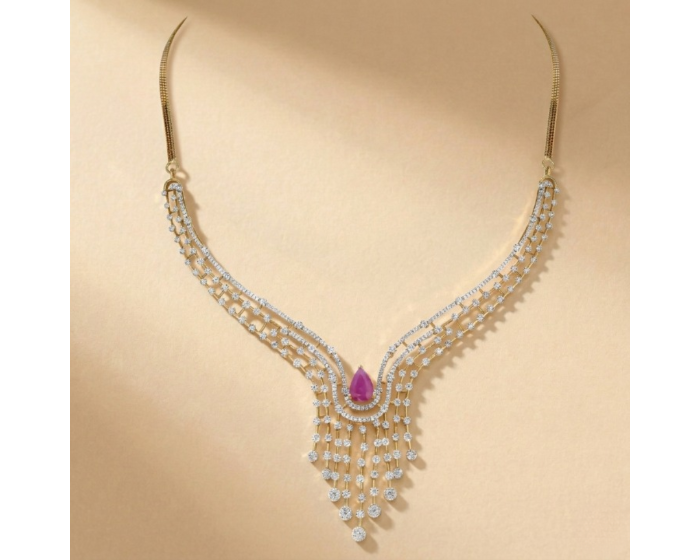Ananya Diamond & Ruby Necklace in 18K Gold.