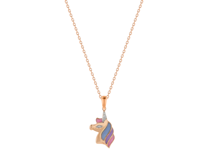 Whether it’s the magic, the wonder, or the beautiful rainbow colors, most little girls love unicorns. This necklace from our Ara collection in 18 karat rose gold features fully diamond studded horn and eye 0.02 karat, and pink, blue and purple coloured enamel for the hair. Making for a magical gift to the special little princess in your life.