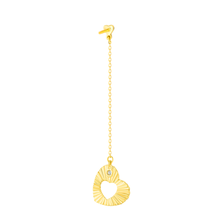 Let your love shine with these dainty drop earrings in 18K yellow gold garnished with diamond from the Farfasha Sunkiss Hearts collection. Brimming with charm, the 11mm heart motifs are suspended on a finely wrought chain and set with diamond, considered the ultimate symbol of eternal love. The whimsical nature of the iconic Farfasha collection is echoed here in the crafting of Farfasha’s signature pleated design that breathes life into the motifs, imbuing them with a glorious sun-ray effect that appears to dance as it catches the light. The interior heart cut-out adds a playful and striking touch. These finely crafted earrings are sure to be a favourite whose contemporary appeal will liven up any outfit in luxurious style. What more beautiful way could there be to express your love than through an irresistible pair of earrings that she will treasure forever more.
