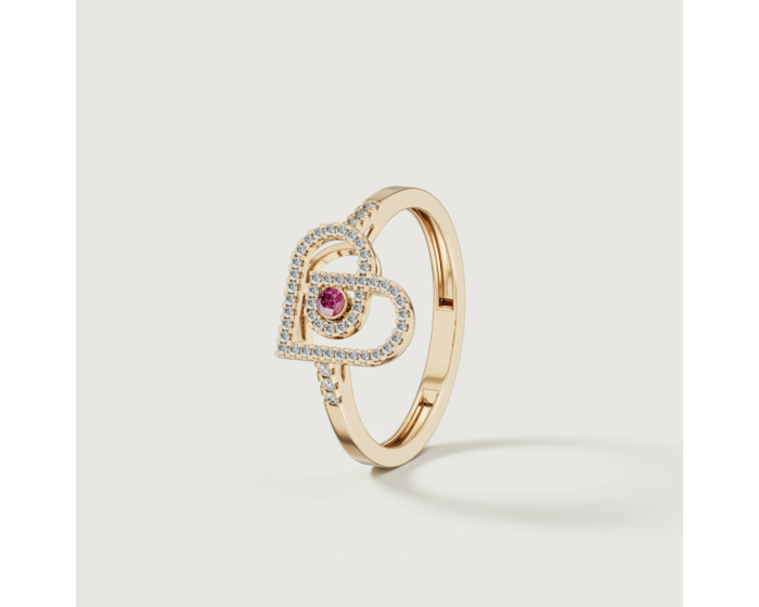 Love by Damas 18k Rose Gold Diamond and Ruby Heart Ring