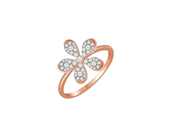 خاتم أنانيا أليسا اللافت للنظر والأنيق، يتميز بزهرة ياسمين مصقولة بدقة بالألماس، داخل حلقة من الذهب الوردي عيار 18 قيراط. يعكس التصميم جوهر المجموعة، القوة النابعة من الجمال الرقيق.