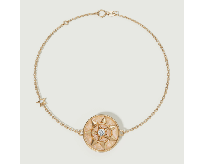 سوار "فرفشة شمس" هذا، جوهر أشعة الشمس الدافئة، مُجسّد في شكل مجوهرات، يتميز بميدالية ذهبية من عرق اللؤلؤ من الذهب الأصفر عيار 18 قيراطًا. يُعزز الحجر المضيء نمط أشعة الشمس بتألقه الطبيعي، بينما تُعزز قطعة الماس المركزية اللامعة إشراقته.