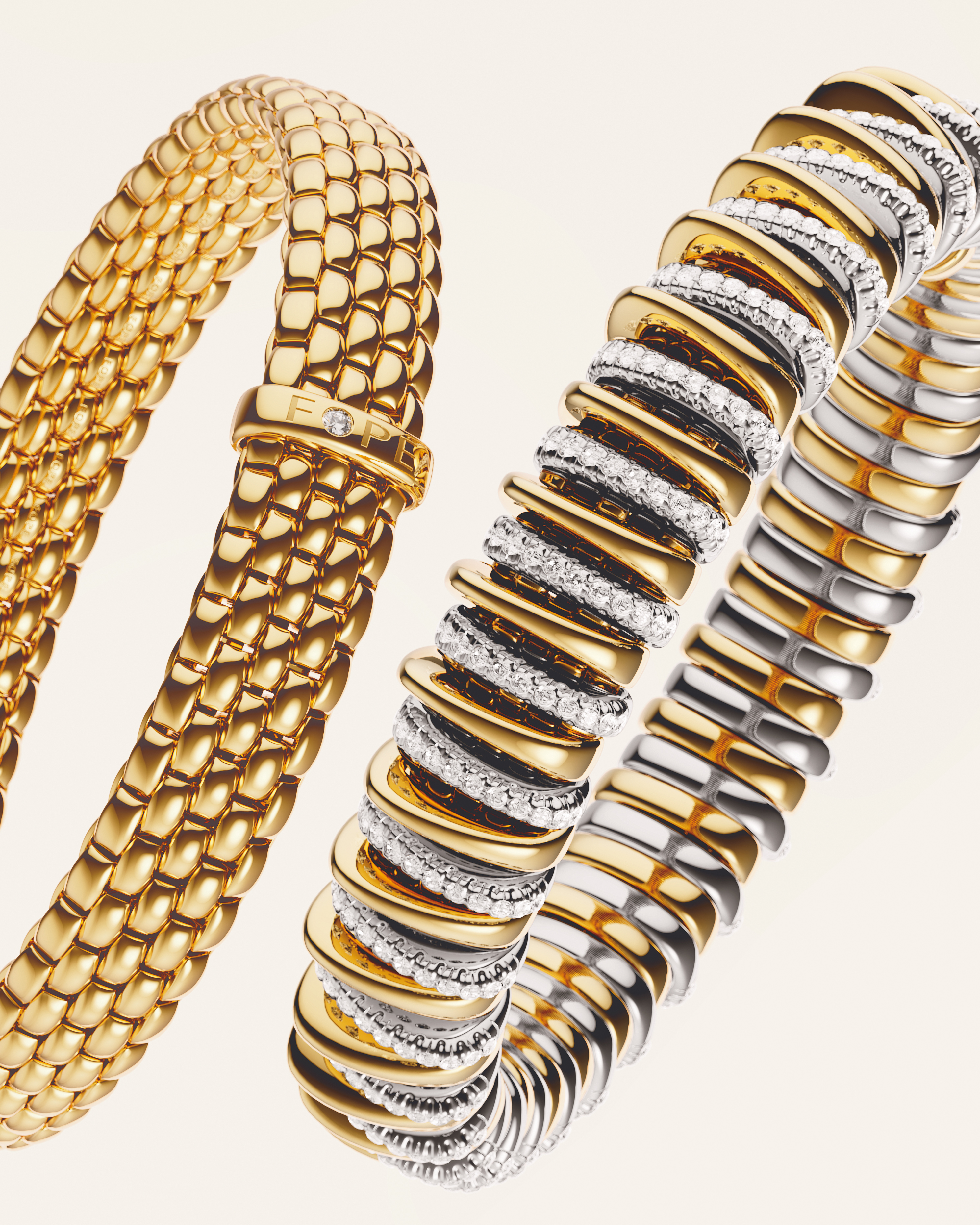 For the Panorama collection, the iconic oval Novecento mesh is wider but is so slim that it looks almost flat. Flex’it Panorama bracelets and rings offer a new feeling of comfort, like a soft ribbon caressing your skin, making each day extraordinary.