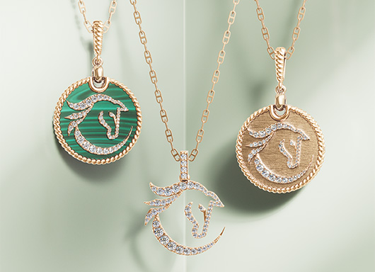 Aseela draws inspiration from the noble beauty of the Arabian horse, capturing grace, loyalty, and strength through refined jewellery forms. Sculpted silhouettes echo delicate lines and fluid movement, expressing purity and feminine grace.