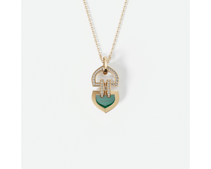 Dome Art Deco Double builds on the legacy of the original Dome collection and its Art Deco extension, presenting a striking evolution with a distinctive double motif design. Each piece showcases two dome elements arranged in perfect symmetry—one adorned with sparkling diamonds, mirrored by another in a choice of polished gold, lustrous white mother of pearl, rich green malachite or vibrant turquoise. Diamond-set connecting elements unite these dual components, creating a harmonious balance between structure and ornamentation. Through a selection of necklaces, bracelets, earrings and rings, Dome Art Deco Double elevates the regal spirit and architectural beauty that defines the Dome family while offering a fresh take on cultural heritage and modern refinement.