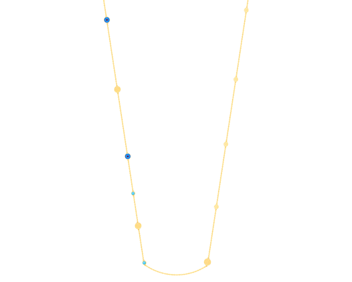 قلادة تاليسمان من الذهب الأصفر عيار 18 قيراطا الفيروز والمينا