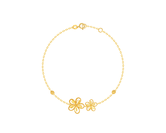 Experience the enchanting allure of this Anmol Floret bracelet. Crafted from shimmering 21K gold, its delicate blossoms capture the essence of nature's beauty and your unique essence. Let this exquisite piece become a symbol of your inner freedom and balance.