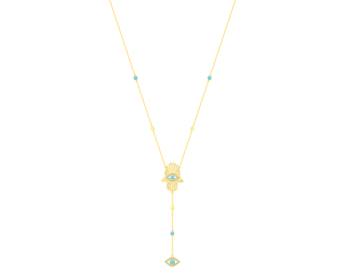 قلادة تاليسمان من الذهب الأصفر عيار 18 قيراطا والألماس والفيروز