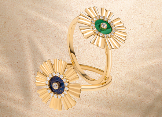 مستوحاة من الألعاب النارية في أفق دبي وليالي الاحتفالات، من دبي إلى سانتوريني، صُممت هذه المجموعة المبهرة لمن يُحوّلون كل أمسية صيفية إلى احتفال. مجوهرات ترافقكِ أينما ذهبتِ.
