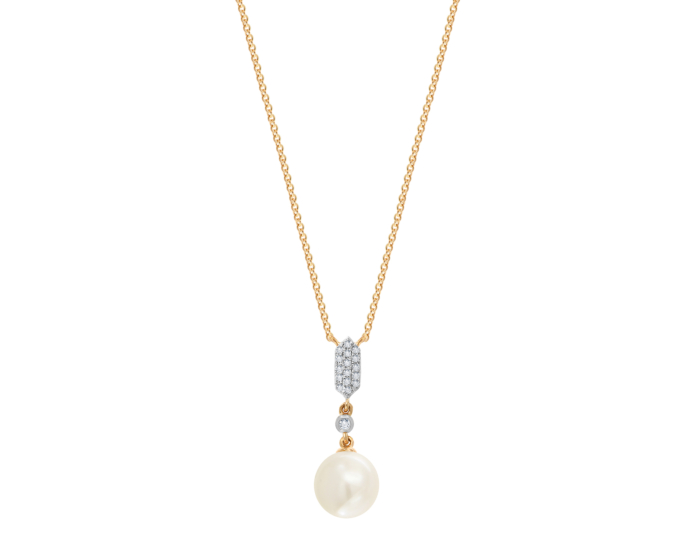 A classic necklace featuring a lustrous freshwater pearl suspended from a diamond-set bail in 18k rose gold. This timeless design offers refined elegance that never goes out of style. The perfect balance of pearl beauty and diamond sparkle creates enduring sophistication.