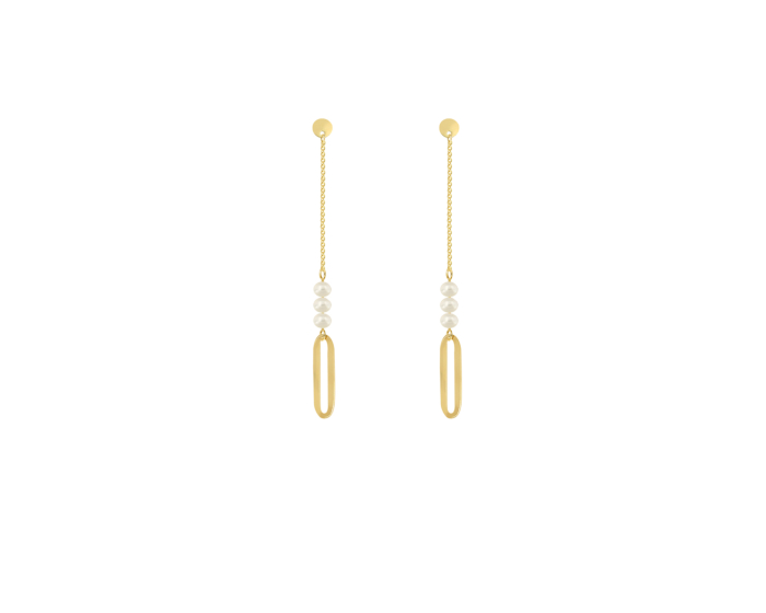 تتميز هذه الأقراط المتدلية الجذابة من مجموعة كيكو مينيمال بسلاسل رفيعة من الذهب الأصفر عيار 18 مزينة بلآلئ مياه عذبة لامعة، تتوج بقلادات بيضاوية ممدودة لافتة. يخلق التصميم العمودي حركة راقية وطولاً أنيقاً يؤطر الوجه بشكل جميل.دمج مثالي بين الهندسة البسيطة والأناقة العضوية يحول العناصر البسيطة إلى قطع عصرية ملفتة.