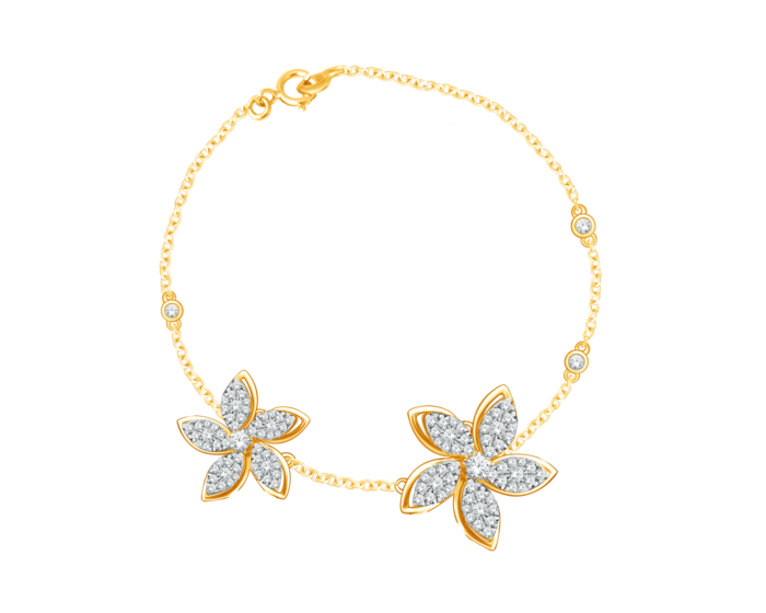 Gracefully wrapping around the wrist, this Ananya Alyssa bracelet in 18k yellow gold features delicate diamond-studded jasmine motifs set within the finely crafted chain and accented by further diamonds set nestled among the links. A radiant symbol of elegance and beauty, this adornment is designed to lend irresistible allure to every occasion.