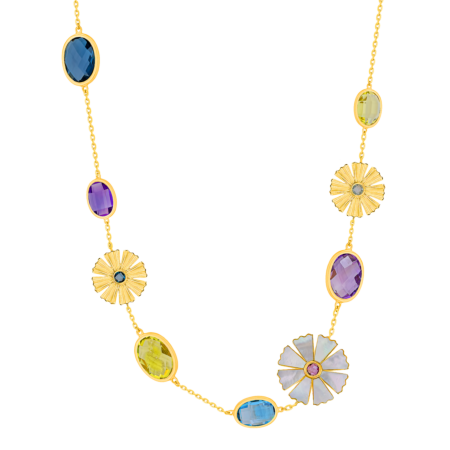 All the glorious bliss of summer flowers in bloom is captured in the Farfasha Sunkiss Garden collection. Crafted in 18k yellow gold, each design of necklaces, bracelets, anklets, earrings and rings is given a beautiful vibrancy with the setting of semi-precious stones that include amethyst, London blue topaz, blue topaz, lemon quartz and mother of pearl.