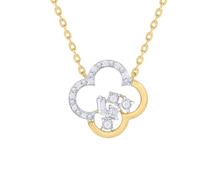 Mesmerizing in its symbolic beauty, this 18k gold necklace showcases a quatrefoil pendant that captures light and imagination alike. The clover silhouette features diamonds delicately set along two of its graceful curves while a constellation of brilliance dances within its open center. Every facet catches and reflects light differently, creating an enchanting visual rhythm that draws the eye. The gold chain provides the perfect backdrop for this emblem of radiant beauty, transforming an everyday accessory into a conversation piece of quiet luxury.